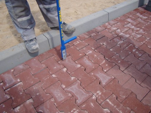 Służy do wyrównywania i przesuwania kostki brukowej. Łom brukarski wyposażony jest w wymienne hartowane końcówki (noże).