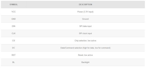 Wyświetlacz zasilany jest napięciem 3.3V i też z takim napięciem współpracuje interfejs SPI, w przypadku korzystania z mikrokontrolerów o logice 5V, należy stosować konwerter stanów logicznych (logic level) dostępny na naszych innych aukcjach.