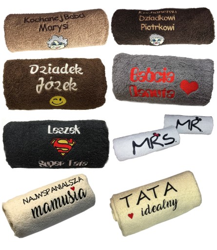 Ręcznik z dowolnym haftem jest idealnym prezentem na każdą okazję i dla każdego ! - Często wykorzystywany jako prezent na uroczystości takie jak ŚLUB, URODZINY, IMIENINY, ROCZNICE, ŚWIĘTA.