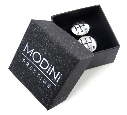 Okrągłe spinki do mankietów w kształcie gałki zmiany biegów w samochodzie.