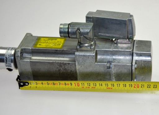 Używany element o symbolu: 1FK7034-5AF21-1LH0, serwomotor renomowanej firmy Siemens, silnik z rodziny SIMOTICS S świeżo zdemontowany z całkowicie sprawnej maszyny, która została zdemontowana z powodu modernizacji linii. Moc maksymalna 0,46kW; posiada wbudowany enkoder absolutny 20 bitów AM20DQ wyjście do karty sterowania interfejsem SINAMICS SMI20, DRIVE-CLiQ. W zestawie jest jeszcze sprzęgło kłowe. Serwomotor posiada zintegrowany, normalnie zablokowany hamulec elektromagnetyczny sterowany napięciem DC 24V.