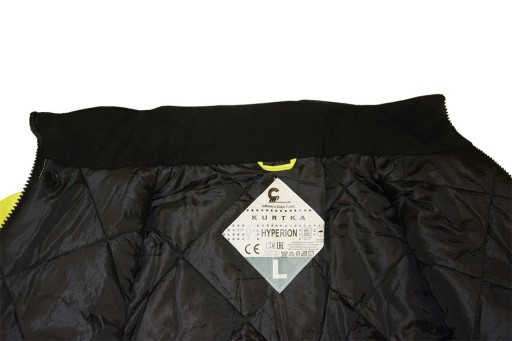 Nieprzemakalna ocieplana kurtka z fluorescencyjnego materiału.