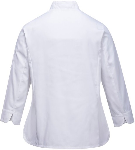 Przeznaczona do pracy w lokalach gastronomicznych. Dla zachowania świeżości podczas pracy, zaprojektowano oczka wentylacyjne oraz panele z siatki MeshAir™ umieszczone pod pachami. Koszula posiada rozcięte mankiety oraz cztery rzędy wypinanych guzików w czarnym kolorze. Na rękawie znajduje się dodatkowa kieszonka. Odzież wykonana z bardzo trwałej tkaniny o skośnym splocie odpornym na odbarwienia. Tkanina została wykurczona co gwarantuje zachowanie rozmiaru po wielu praniach.