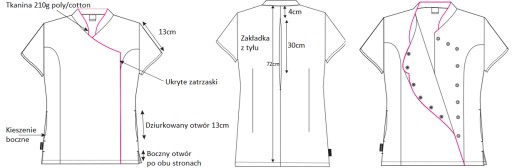 Klasyczna tunika doskonała do wielu zastosowań. Ozdobiona kontrastową lamówką. Stosowana wszędzie tam, gdzie wymagają tego zasady higieny lub możliwe jest zabrudzenie, czy też zniszczenie odzieży wierzchniej.