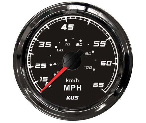 Wysokiej jakości prędkościomierz do łodzi firmy KUS. Wykonany z wytrzymałego tworzywa i wykończony ramką ze stali nierdzewnej AISI 316. Całkowicie wodoodporny. Posiada dwa kolory podświetlenia tarczy, czerwony i żółty, podłączamy wg. gustu. (Należy dokupić czujnik z rurką kod 03721 lub 03722). Można dokupić kostkę łączeniową kod: 03324 (na naszych aukcjach).