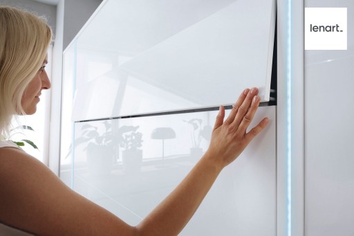 Otwieranie i zamykanie łóżka jest lekkie, bezpieczne i wygodne, a to za sprawą pneumatycznych podnośników. Otwarcie łóżka zaczynamy od kliknięcia w klapkę na froncie. Teraz wystarczy tylko delikatnie pociągnąć, aby łóżko samo zaczęło powoli opadać. Podobnie wygląda składanie – wystarczy lekko unieść łóżko, aby całość zniknęła w ścianie, oddając przestrzeń na inne aktywności domowników.