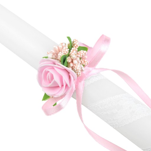 Świeca do KOMUNII - różowa ozdoba z kwiatków