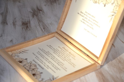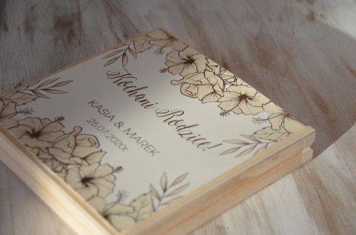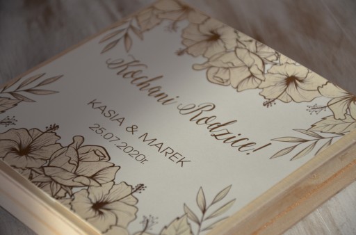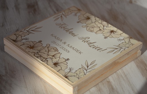 - Nadruk na górze pudełka (Kochanym Rodzicom, Kochanym Dziadkom, Drogiemu Świadkowi, Drogiej Świadkowej)