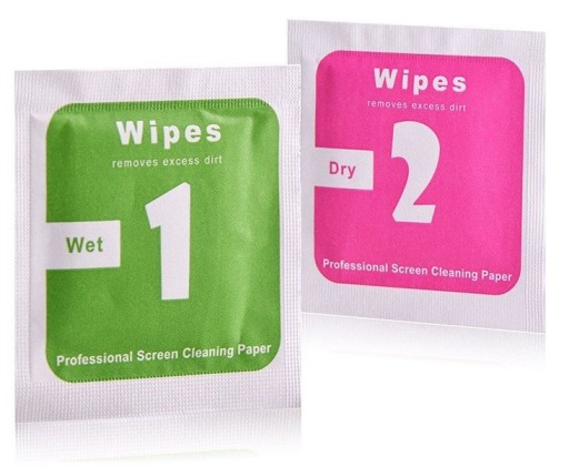- mokra - nasiączona preparatem do wyczyszczenia i odtłuszczenia ekranu
