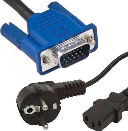 - kabel zasilający + kabel D-sub