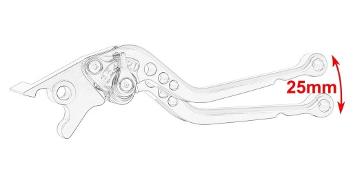 Odchylenie klamek od manetek jest regulowane, pełny zakres regulacji przy skrajnych położeniach wynosi 25 mm.