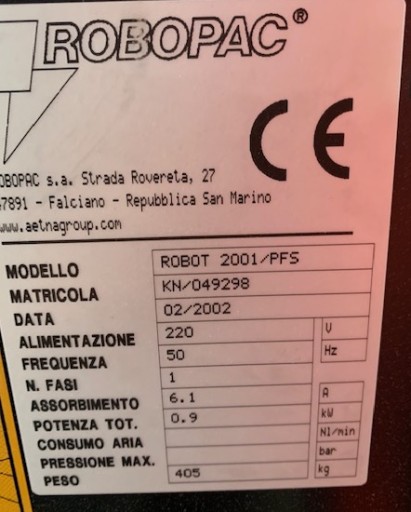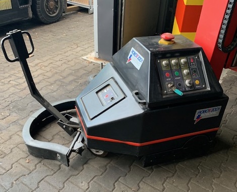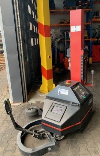 Sprzedam owijarkę do palet Robot 2001 Robopac. Maszyna z napędem akumulatorowym owija streczem dowolne pakunki gabarytowe poprzez objeżdżanie ich wokół.