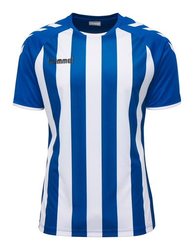 Koszulka w pasy marki HUMMEL stworzona z poliestru z myślą o jak najlepszym oddychaniu materiału dzięki czemu jest ona bardzo przewiewna. Zastosowana technologie COOL i FIT ZONE zapewniają wysoki komfort użytkowania. Koszulka meczowo-treningowa.