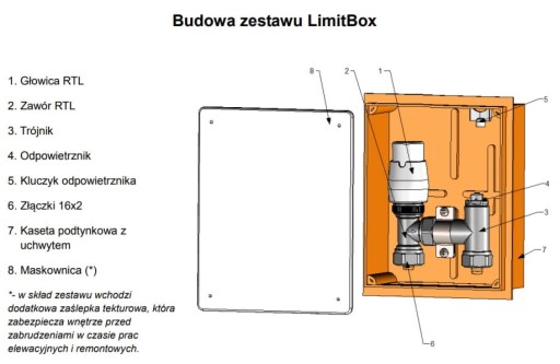 Zestaw "Limit Box" GZ ½” / GZ ¾”, przeznaczony jest do ograniczenia temperatury na powrocie grzejnika lub/i do regulacji temperatury dla małych powierzchni ogrzewania podłogowego (do 15 m2) w kombinowanych instalacjach ogrzewania podłogowego i grzejnikowego. Zastosowanie powyższego ogranicznika spowoduje utrzymanie stałej temperatury powrotu medium grzewczego w zakresie od 10 do 50°C oraz eliminuje potrzebę zabudowy zaworu mieszającego i dodatkowej pompy obiegowej.
