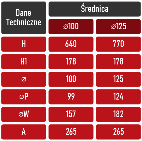 Kominek wentylacyjny typu: Kombi 100