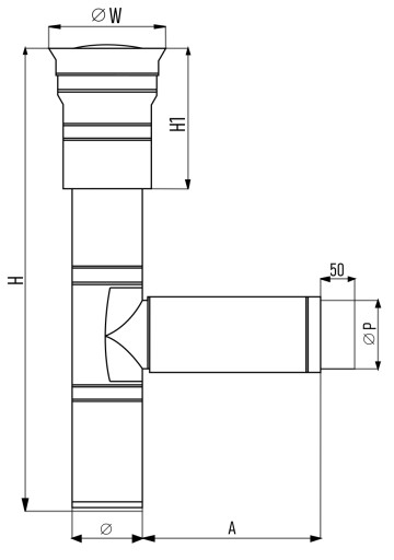 Autorska konstrukcja kominka wywiewnego z bocznym podłączeniem. Zalecana do wykorzystania w niewielkich pomieszczeniach pozbawionych jakichkolwiek kanałów wentylacyjnych-wywiewnych.
