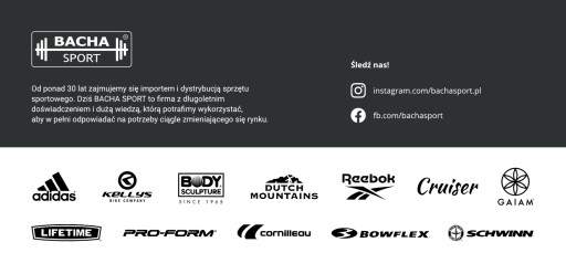 W Bacha Sport chcemy dostarczać nowoczesny sprzęt sportowy najwyższej jakości w najlepszej cenie. Dlatego współpracujemy wyłącznie z renomowanymi producentami artykułów sportowych.