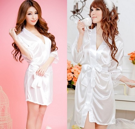 АТЛАСНЫЙ БАННЫЙ ХАЛАТ КРУЖЕВНОЕ PETTIME, СТРИНГИ + ЧУЛКИ