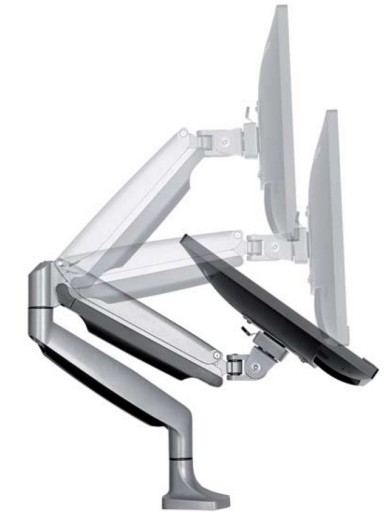 - Ułatwia zagospodarowanie miejsca na biurku i pozwala na ustalenie najodpowiedniejszej ergonomicznej pozycji użytkownika.