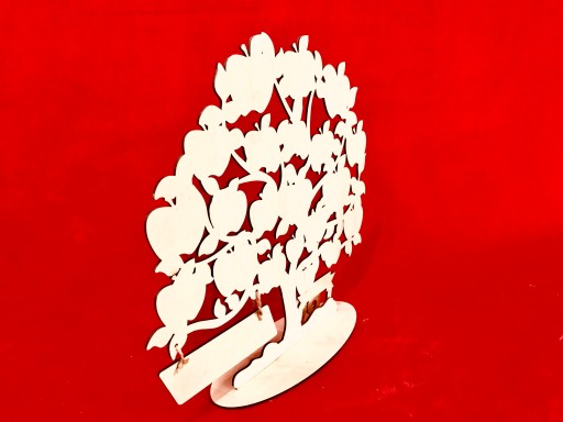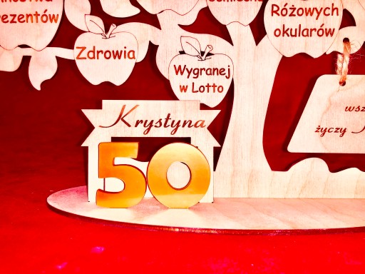 Przepięknie wycięte ze sklejki i grawerowane drzewko z życzeniami dla solenizanta.