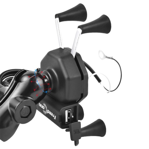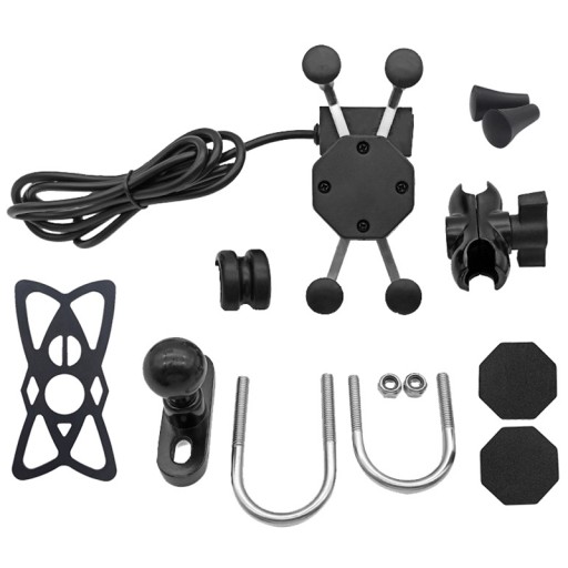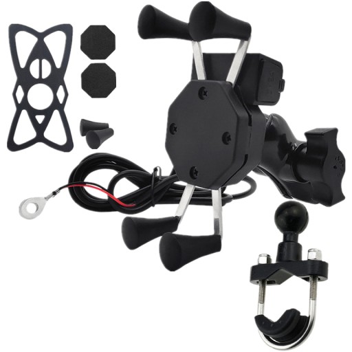 ✅ Uchwyt typu X z 4 ramionami zakończonymi gumowymi chwytakami, ładowarką USB, włącznikiem i kablem