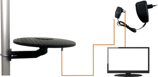 Do prawidłowego podłączenia zestawu niezbędne jest użycie kabla koncentrycznego np. RG-6 z wtykiem F (dostępne dowolne długości w naszych ofertach).