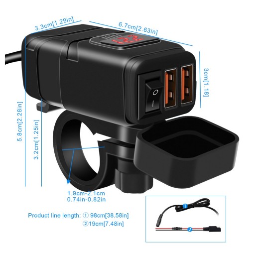 ЗАРЯДНОЕ УСТРОЙСТВО ДЛЯ МОТОЦИКЛА ВОЛЬТМЕТР 2xUSB QC 3.0