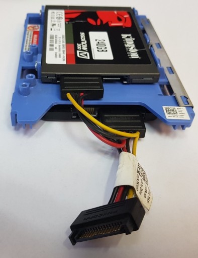 Przykładowe zdjęcie przy montażu dwóch dysków, wraz z użyciem adaptera SATA.