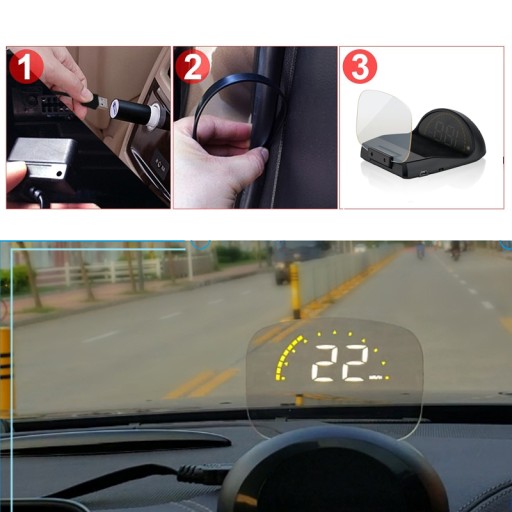 Wyświetlacz pasuje do samochodów wyposażonych w złącze OBDII lub do dowolnego pojazdu przy skorzystanie z wbudowanego modułu GPS w urządzenie. UWyświetlacz wyświetla jednak tylko te informacje, które przekazuje im komputer pojazdu. Najnowszy w naszej ofercie wyświetlacz HUD, który nie wymaga klejenia specjalnych folii do szyby - obraz rzucany jest na przezroczysty uchylny ekran w urządzeniu! Rozwiązanie stosowane fabrycznie w nowych samochodach!