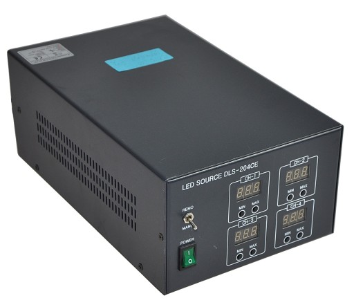 Używany element o symbolu: DLS-204CE, produkt koreańskiej firmy DAE GYUM ENG CO. Ltd. Jest to elektroniczny regulator prądu do oświetlaczy kamer systemów wizyjnych w przemyśle. Urządzenie posiada cztery niezależne tory sterowania dla 4 lamp.