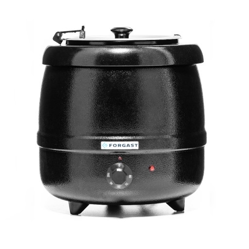 Elektryczny kociołek do podgrzewania zup i dań jednogarnkowych o pojemności 10 l. Wewnętrzny pojemnik na wodę z aluminium. Obudowa kociołka odporna na korozję.
