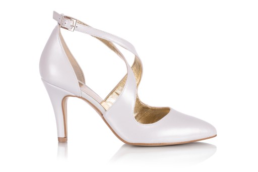 Modne szpilki taneczne IDA z czubatym noskiem z paskami wykonane z najwyżej jakości materiału pochodzenia włoskiego oraz najwyższą starannością przy użyciu specjalnych technik obuwniczych typu ,,Handmade’’. Jeśli szukasz modnych szpilek ślubnych na średnim obcasie, które będą dobrze trzymały się stopy polecamy właśnie model IDA. Nasze szpilki wyposażone są w pianki lateksowe co znacznie przyczynia się do podwyższenia komfortu i amortyzacji stóp. Obcas pokryty materiałem oraz złote dodatki (wyściółka i podszewka) sprawiają, że klasyczne buty ślubne będą pięknym dopełnieniem stroju panny młodej dodając całości szyku i elegancji. Przekonaj się jak bardzo wygodne są te buty.