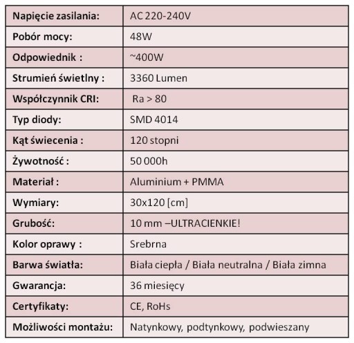 Oryginalny Ultracienki Panel Led 48W, o wymiarze: 30x120 cm.