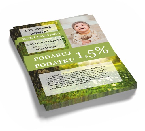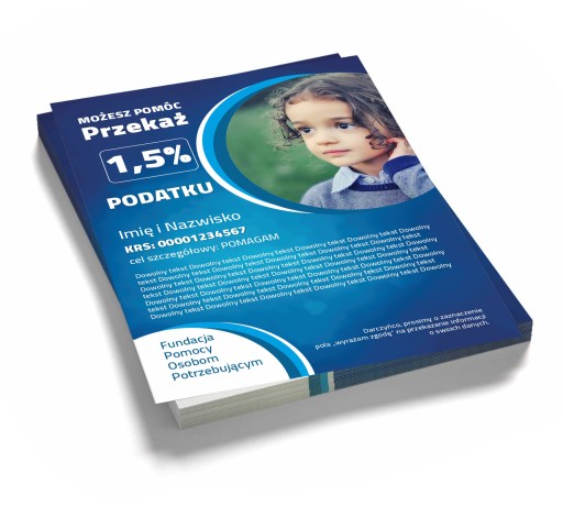 Ulotki zachęcające do przekazania 1,5% podatku są świetnym wyborem, właśnie ze względu na niewielki kompaktowy format mieszczący się w każdej kieszonce lub portfelu.