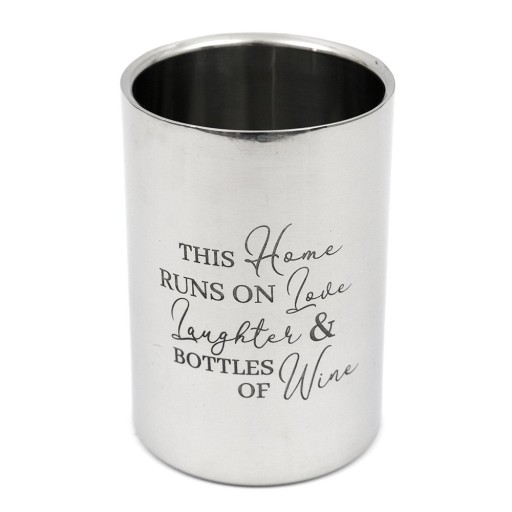 Prosty w formie, pojemnik do wina / lodu wykonany ze stali nierdzewnej. Powierzchnia dekorowana jest napisami co sprawi że nada uroku nowoczesnemu pomieszczeniu. Może służyć jako dekoracja w witrynie ale przede wszystkim przyda się do przechowywania schłodzonych butelek podczas spotkań z przyjaciółmi. Idealny pomysł na prezent.