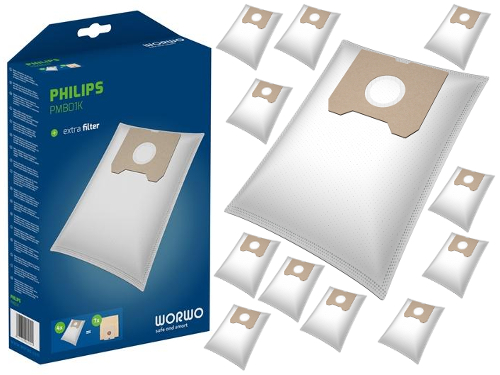 WORKI DO ODKURZACZA PERFECT BAG WŁÓKNINOWE PMB01K FIRMY WORWO 12 SZTUK WORKÓW + 3 FILTRY