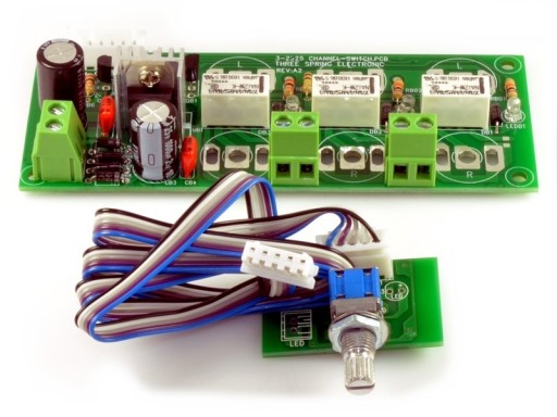 Wybieranie wejścia 3-pozycyjnym przełącznikiem na płytce połączonej z selektorem taśmą o długości ok. 55cm.
