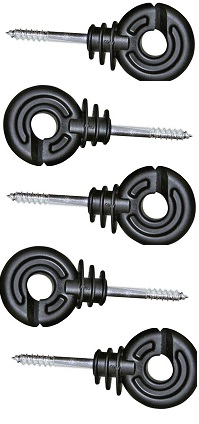 - Znajdujące się w zestawie izolatory, należy wkręcić w drewniane słupki (paliki) albo w drewniane bądź betonowe słupki od istniejącego ogrodzenia. Paliki wbijamy w ziemię i rozstawiamy w odległości około 4-5 metrów.