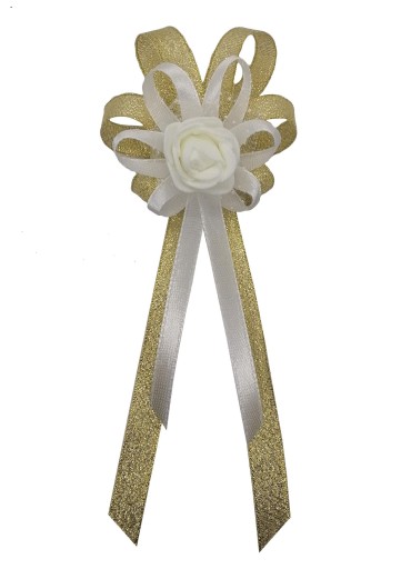 Kotyliony wykonane są z naturalnie wyglądających różyczek piankowych oraz efektownego upięcia atłasowych wstążek 6 i 10 mm.