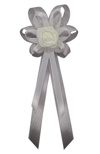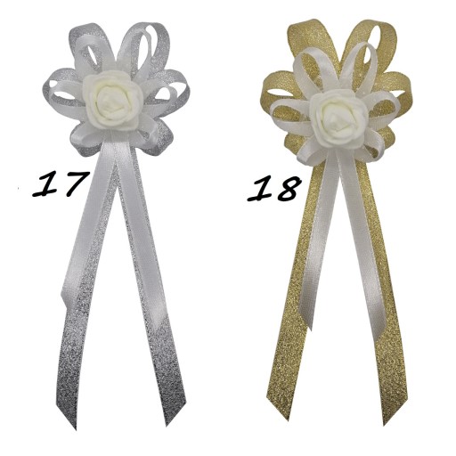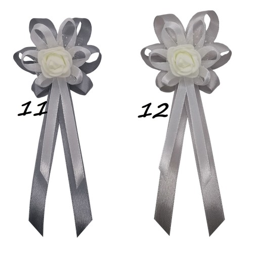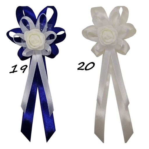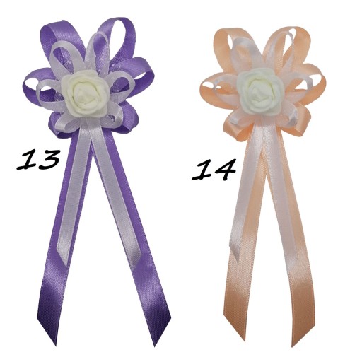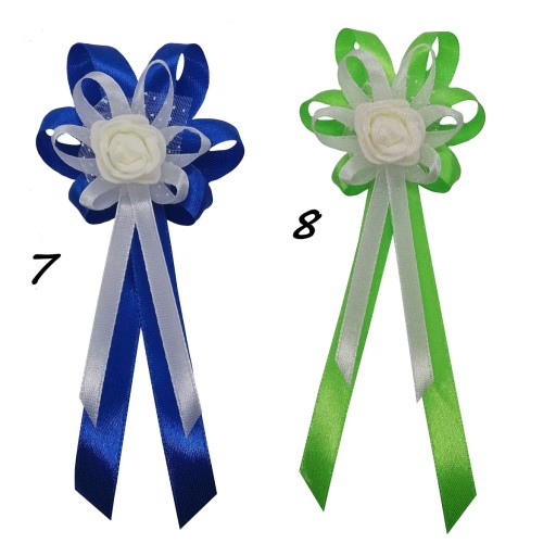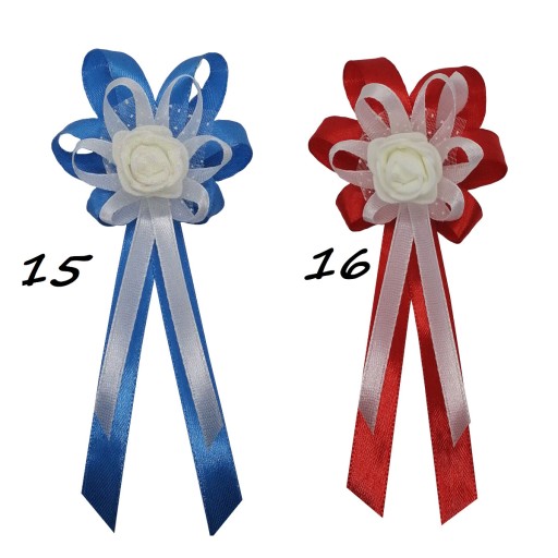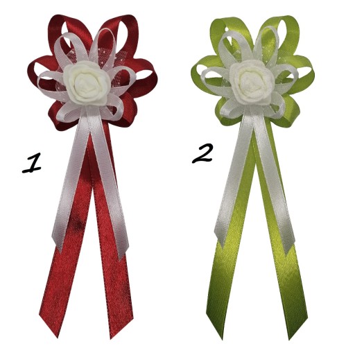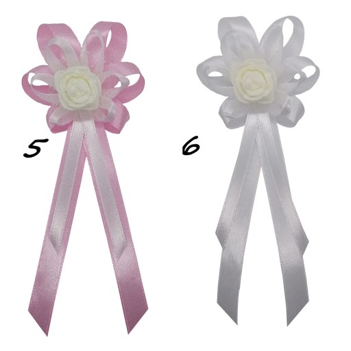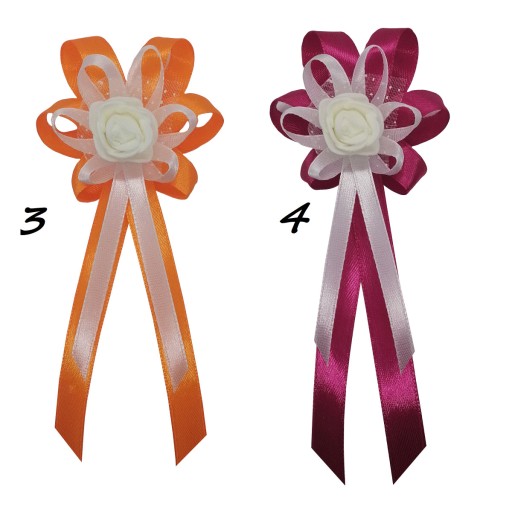 Kotyliony wykonane są z naturalnie wyglądających różyczek piankowych oraz efektownego upięcia atłasowych wstążek 6 i 10 mm.