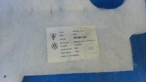 Wygłuszenie drzwi Porsche Cayenne S 4.8 958 7P5 2012r