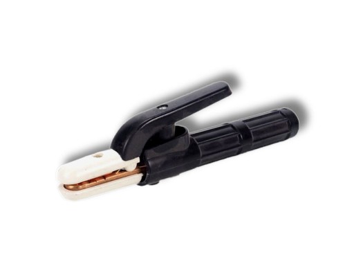 Solidny uchwyt do spawania elektrodami, wykonany z materiałów wysokiej jakości. Część chwytna została wykonana z mosiądzu, a rączka z izolującego tworzywa sztucznego. Całość wykonana jest z materiałów odpornych na wysokie temperatury.