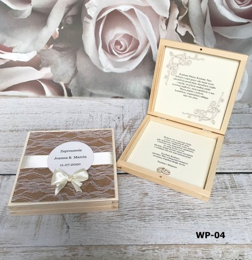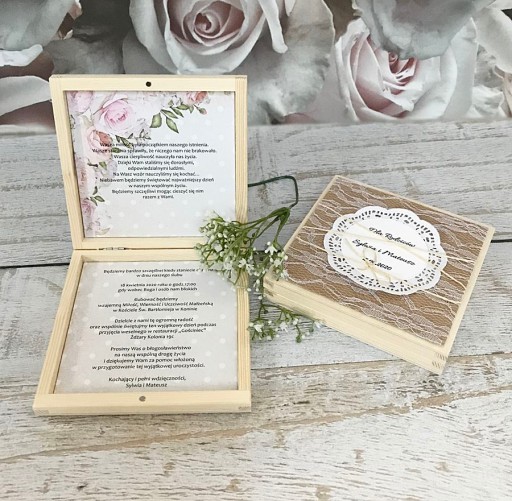 Zaproszenie w formie drewnianego pudełka zamykanego na magnes