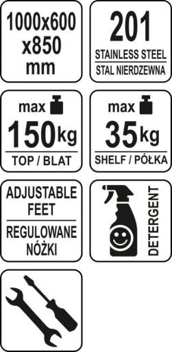 Stół centralny skręcany z półką marki YATO o wymiarach 1000 x 600 x 850.