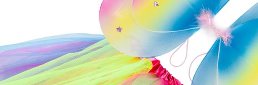 Skrzydła: ozdobione brokatami, kwiatem i boa. Mocowane w łatwy sposób na gumki zapewniające utrzymanie się skrzydełek;