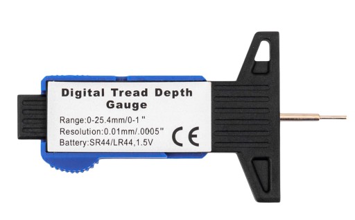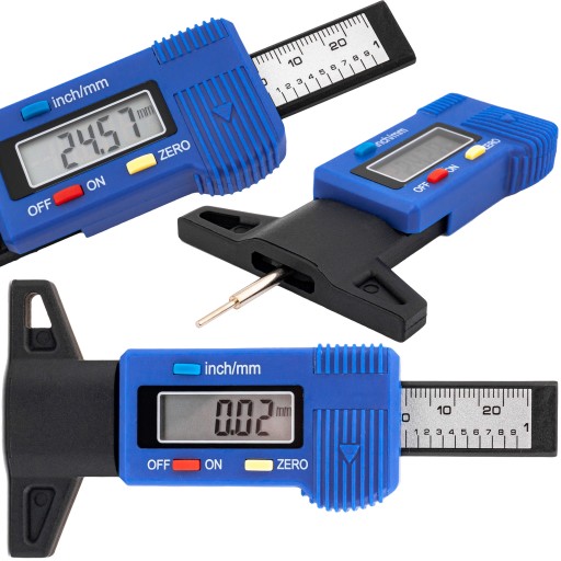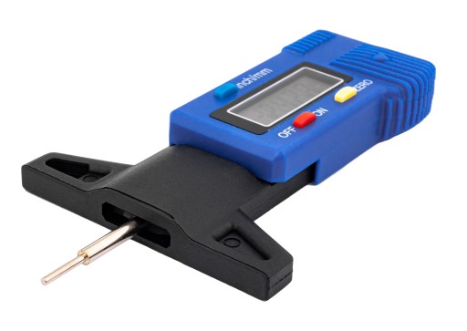 Cyfrowy miernik wysokości bieżnika, niezbędny przy ocenianiu stopnia zużycia opon.