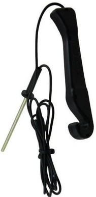- Podpinamy kabelkiem (czerwonym) elektryzator do plecionki. Drugi kabel (niebieski) mocujemy do palika uziemiającego, który następnie wbijamy w ziemię (w przypadku bardzo suchego podłoża, należy grunt wokół palika polać wodą).
