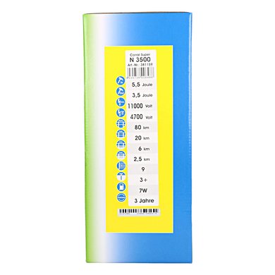 Oryginalny niemiecki Silny elektryzator sieciowy Corral N3500. Idealny jako ochrona przed dziką zwierzyna(dziki, jelenie, lisy, sarny). Urządzenie odpowiada wymaganym normom Unii Europejskiej (CE) i jest sprawdzane wg europejskich standardów. W chwili zetknięcia się zwierzęcia z przewodami ogrodzenia elektrycznego występuje krótkotrwałe uczucie bólu, spowodowane przepływem impulsu elektrycznego. Impulsy te, pomimo dużego napięcia, nie stanowią zagrożenia dla zdrowia i życia, powodują jedynie odruchowe cofnięcie się zwierzęcia od ogrodzenia.