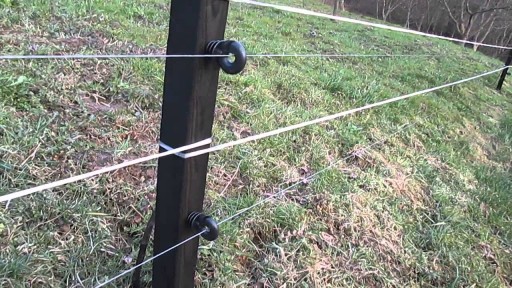- W uchywty znajdujące się w palikach rozwieszamy drut. Wysokość na jakiej zawieszamy drut jest zależna od wielkości zwierza. Przy budowie ogrodzenia dla dorosłych dzików należy ją zawiesić na 2-3 poziomach