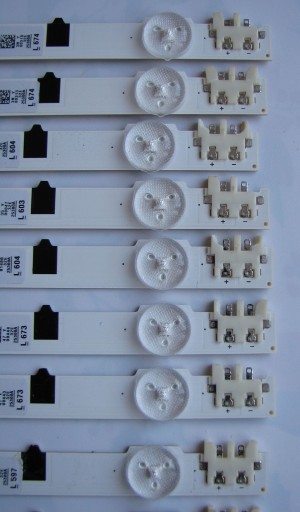 Podświetlanie matrycy / listwy LED Lumens D2GE-320SC0-R3 - oryginalnie do TV Samsung 32F5000/F5300/F5500 z matrycami FULL HD (firmy Auo i Samsung - do paneli Sharpa z t-con RUNTK5351TP nie pasują - tam jest inny symbol listwy). Listwy NOWE, w 100% sprawne i oryginalne - zdemontowane z NOWYCH TV uszkodzonych w transporcie - są w idealnym stanie, nie wygrzane itp (100% oryginał, nie żaden chiński zamiennik). Jedyny minus na niektórych listwach lekko wyłamane plastiki przy zapięciach (efekt szybkiego i niezbyt precyzyjnego demontażu, pokazane na 6 zdjęciu - jednak nie ma to wpływu na zapięcie listwy i jej poprawne działanie) Pasują też do innych modeli ....np UE 32F6270, UE 32F5300, UE 32F5570, UE32F5000, UE32F4000, UE32F4500, UE32F5370, UE32F6100, 32F5070 itp kwestia rodzaju matrycy..... Podana cena za 1 szt (1x 9led) Zapraszam do zakupu!!!